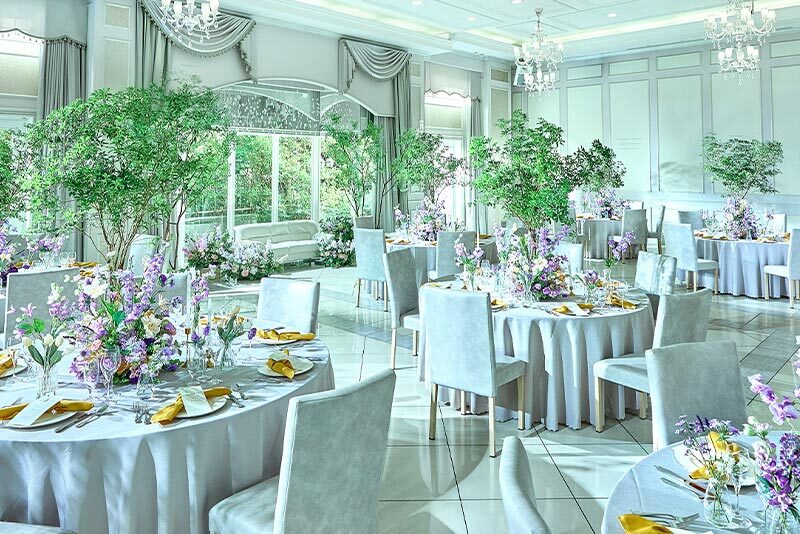 パーティ会場のテーブルコーディネートやレイアウトの一例をご紹介。結婚式直前のタイミングなら先輩カップルのセッティングが見られることも。アイデアを参考に自分たちらしいイメージを膨らませてみましょう。