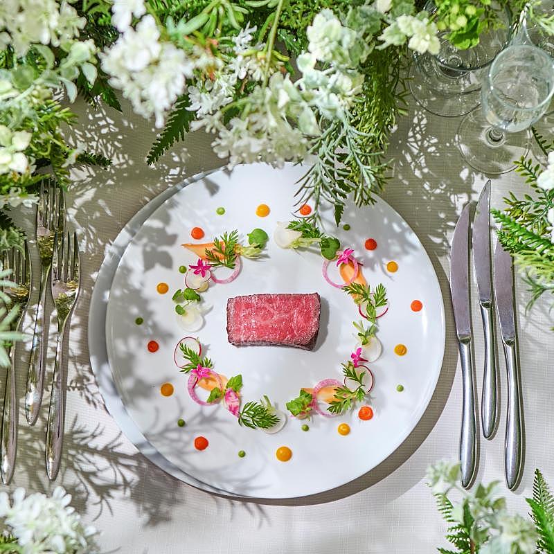【旬の食材を使用した当館オリジナルの”フレンチジャポネ”】次回ご来館時にシェフ監修の旬の野菜や黒毛和牛を使用した贅沢試食が無料で♪さらに料理長とのお打合わせで世界に1つのメニューをおつくりいたします。