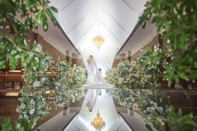 花嫁の美しさを引き立てる自然光溢れる誓いの空間